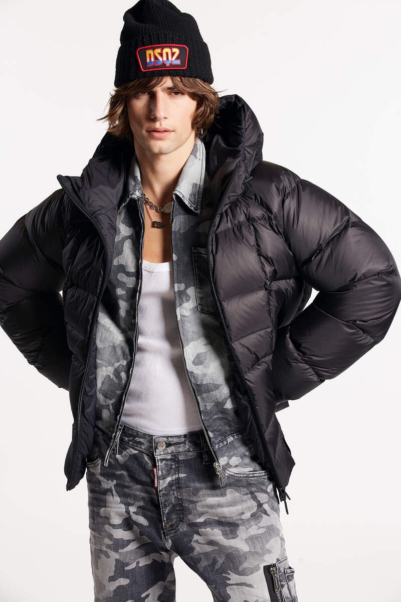 - PRODUCT ID: S74AM1414S54056900 - QUILTED NYLON PUFFER JACKET - DOWN PADDING - OVERSIZED FIT - STAND COLLAR - DRAWSTRING HOOD - SIDE ZIP POCKETS - DRAWSTRING HEM - TWO-WAY ZIP CLOSURE - REAR "DSQUARED2" PRINT - MADE IN CHINA PRIMARY FABRIC: 100% POLYAMIDE-NYLON. LINING: 100% POLYAMIDE-NYLON. POCKET LINING: 100% COTTON. PADDING: 90% DUCK DOWN, 10% DUCK FEATHERS