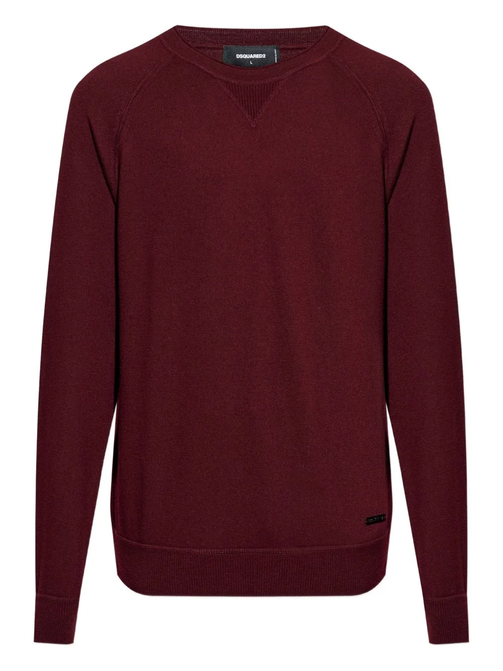 raglan-sleeve sweater Highlights - Burgundy - Raglan sleeves - Crew neck - Wool material - Logo plaque detail - Ribbed hem Made in Italy Composition Virgin Wool 100% Washing instructions Read Manufacturer Guidelines