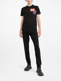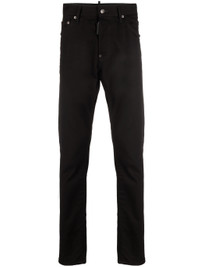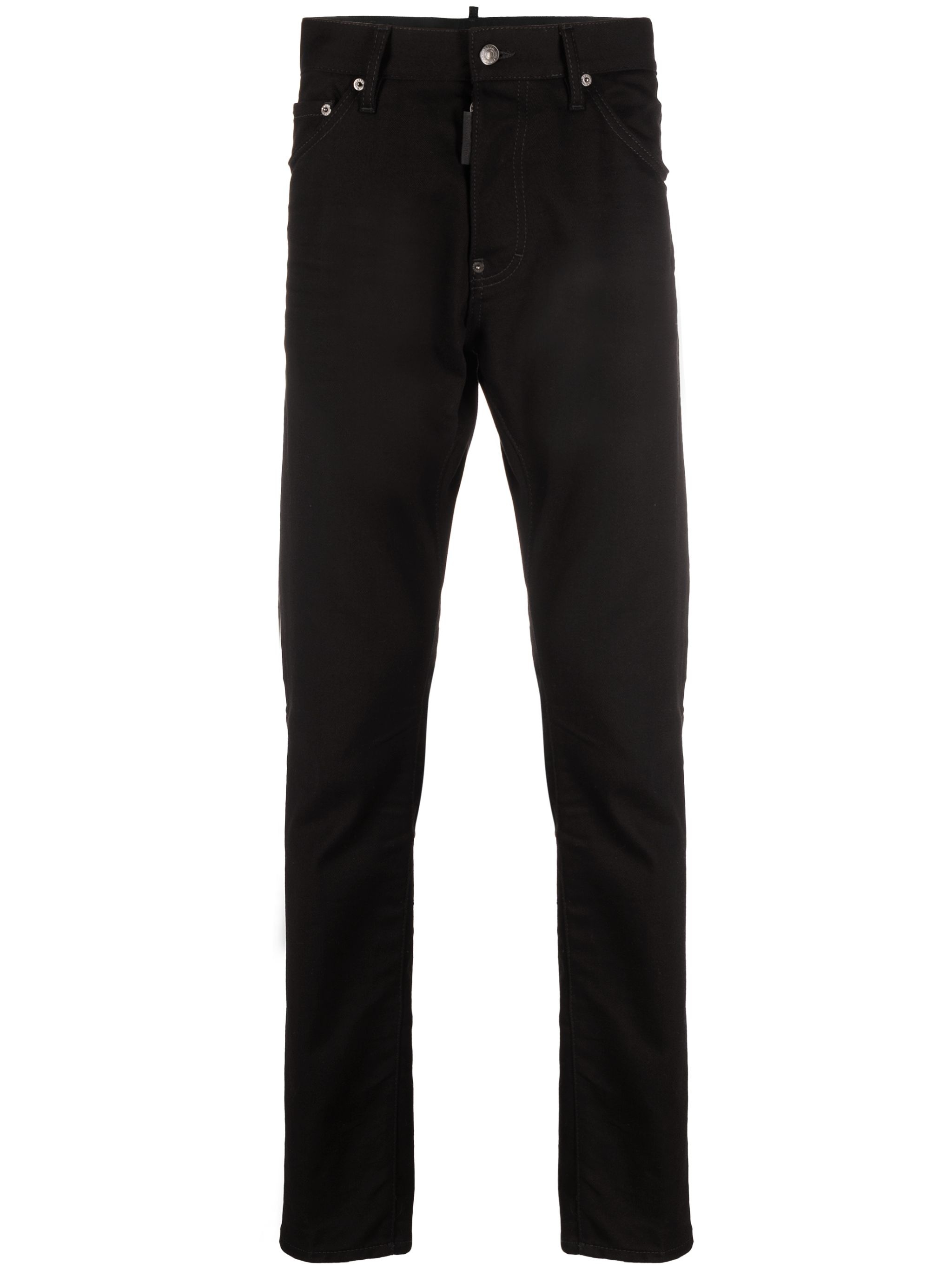 rear logo-print skinny jeans from DSQUARED2 featuring black, cotton blend, belt loops, button fly fastening, skinny cut, classic five pockets and logo print to the rear. Size & Fit Model Measurements: Height: 1.9 m Bust/Chest: 97 cm Hips: 95 cm Waist: 70 cm Model wears size 50 Fabric and Care Designer Style ID: S74LB1135S30564 Designer Colour: 900 BLACK Composition: Outer: Calf leather 100%, Spandex/elastane 2%, Cotton 98%; Lining: Polyester 65%, Cotton 35% Washing instructions: Machine Wash Made in Italy