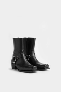 - PRODUCT ID: BOM0026129000012124 - LEATHER BIKER BOOTS - SQUARE TOE - SIDE METAL RING - SIDE ZIP CLOSURE - MADE IN ITALY UPPER: 100% LEATHER. LINING: 100% LEATHER. SOLE: 100% LEATHER