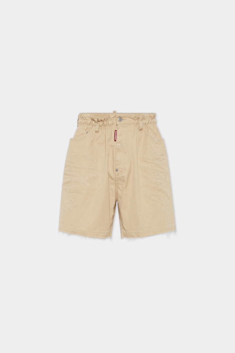 - MADE FROM COTTON TWILL - ELASTICATED WAIST - FIVE-POCKET STYLE - DISTRESSED FINISH - RED DSQUARED2 LABEL PRIMARY FABRIC: 100% COTTON; POCKET LINING: 100% COTTON A loose fit that looks as good as it feels: these cotton twill chino shorts are a summer essential. Their elasticated paperbag waist is totally on-trend too. Treated with rips and fraying for a lived-in look.
