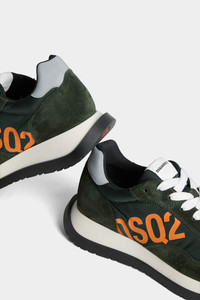 - PRODUCT ID: SNM027001601681M2606 - SUEDE AND NYLON RUNNING SNEAKERS - "DSQ2" PRINT ON THE SIDE - "DSQUARED2" LETTERING ON THE TONGUE - MADE IN ITALY 80% POLYESTER, 20% LEATHER. LINING: 50% CALFSKIN, 50% POLYESTER. SOLE: 100% THERMOPLASTIC RUBBER Don’t let the 90s trend run away from you; grab the Running Sneakers to add a nostalgic vibe to your wardrobe. These multicoloured sneakers by Dsquared2 are finished with our signature logo print for a sporty feel. Plus, they’re really elevated by the little details, like the ‘ICON’ design grip on the sole.