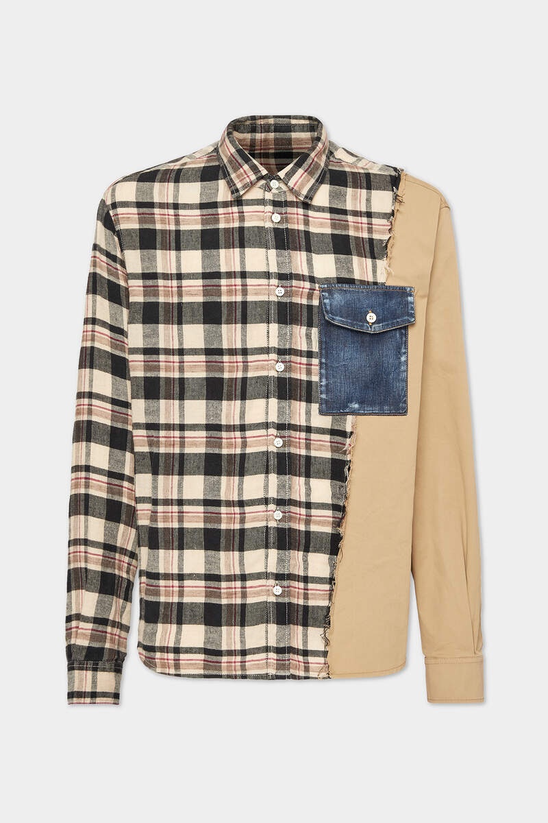 - PRODUCT ID: S74DM0837D35076002F - YARN-DYED MICRO CHECKERED LINEN SHIRT - WASHED STRETCH DENIM AND COTTON POPLIN DETAILS - FLAPPED BREAST POCKET - FIT: LOOSE - BUTTON FASTENING - BUTTONS ON CUFFS - YOKE - CURVED HEM FABRIC 1: 100% LINEN FABRIC 2: 97% COTTON, 3% ELASTANE Patchwork is the distinctive element of this shirt that assembles linen checkered fabric with cotton poplin. The denim detail adds a dash of character that makes the garment unique and to pair with jeans or multipocketed pants.