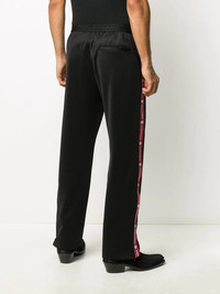 side logo detail straight-leg track pants It's time you treated yourself to a new wardrobe staple item. These black and red track pants from DSQUARED2, adorned with embroidered logo panels to the side, are a great place to start. Is there any better combination than style and comfort? Highlights - Black/red - Cotton-blend - Straight leg - Logo-embellished side panels - Elasticated waistband Made in Italy Composition Cotton 50%, Polyester 50% SIZE & FIT Model measurements Height 6 ft 1 in(1.85 m) Bust/Chest 37.79 in(96 cm) Hips 37.4 in(95 cm) Waist 30.7 in(78 cm) FittingInformation This piece fits true to size. We recommend you get your regular size Designed for a slim fit at the waist and loose over the leg Made with a mid-weight fabric Washing instructions Machine Wash