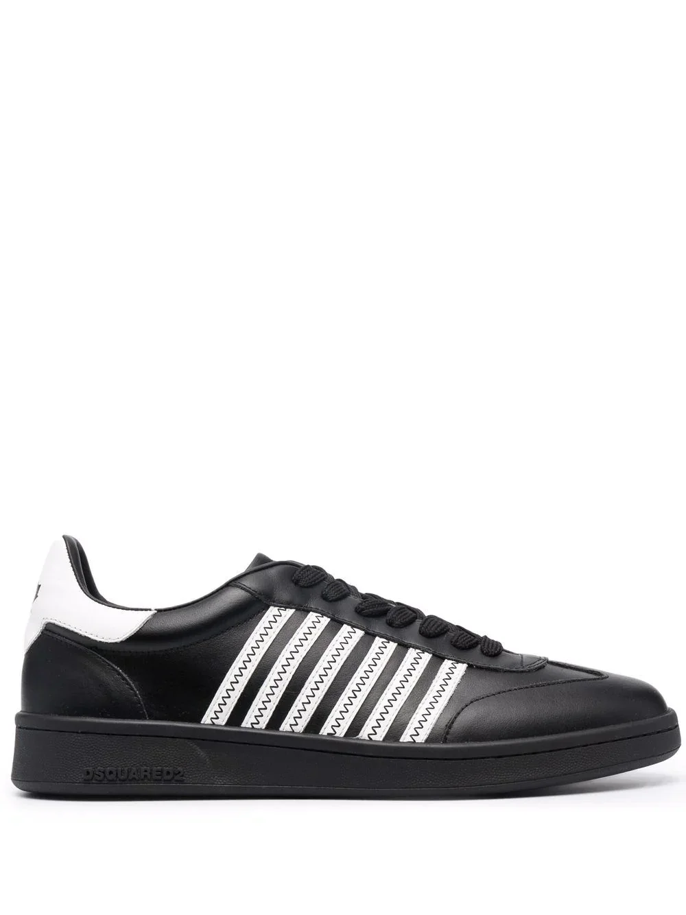 side-stripe detail low top sneakers black/white calf leather side stripe detailing zigzag embroidery logo-print tongue front lace-up fastening round toe flat rubber sole branded insole Made in Italy Composition Outer: Calf Leather 100% Sole: Rubber 100% Lining: Calf Leather 100% SIZE & FIT Measurement HEEL 1.18 in(3 cm) Sole height 0.78 in(2 cm)