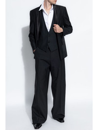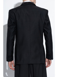 single-breasted blazer Highlights - Black - Virgin wool-silk blend - Front button fastening - Shawl lapels - Long sleeves - Buttoned cuffs - Fabric-covered buttons - Jetted chest pocket - Two front flap pockets - Full lining - Straight hem Made in Italy Composition Virgin Wool 65%, Silk 35%