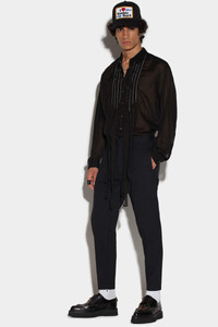 - PRODUCT ID: S74KB0780S40320900 - STRETCH WOOL TROUSERS - SKINNY FIT - PRESSED PLEATS - CONCEALED ZIP CLOSURE - SIDE POCKETS AND REAR WELT POCKETS - REAR LOOP - ZIP CUFFS - REAR METAL "DSQUARED2" PLAQUE - DIMENSIONS: CROTCH 28 CM, LEG OPENING 14 CM, LENGTH 90 CM - MADE IN ITALY PRIMARY FABRIC: 95% VIRGIN WOOL, 5% ELASTANE-SPANDEX. PARTIAL LINING: 100% POLYESTER The Dsquared2 men's Skinny Dan Pants are the perfect addition to any monochrome wardrobe. These pants have a sleek, skinny fit that tapers at the ankle, creating a flattering silhouette. The pants feature two back pockets with buttons, adding a touch of visual interest. These pants are meant to be worn short to show off your socks, making them perfect for a trendy, fashionable look. Pair them with a fitted shirt and sneakers for a casual, yet put-together outfit, or dress them up with a button-down shirt and loafers for a more formal occasion