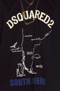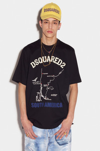 - PRODUCT ID: S74GD1040S23009900 - COTTON JERSEY CREW-NECK T-SHIRT - OVERSIZED FIT - SHORT SLEEVES - GRAPHIC PRINT WITH "DSQUARED2 SOUTH AMERICA” LETTERING - MADE IN ITALY 100% COTTON THE MODEL IS 6'2" TALL AND WEARS A SIZE M GET THE TRAVEL BUG WITH THE SOUTH AMERICA SLOUCH T-SHIRT. THIS TEE BY DSQUARED2 FEATURES A WHIMSICAL OUTLINE DRAWING OF SOUTH AMERICA WITH A LOGO PRINT ON TOP OF A SOLID COLOUR FOR A PARED-DOWN LOOK. POP ON WITH DISTRESSED JEANS FOR A CASUAL OUTFIT WITH INTERNATIONAL APPEAL.
