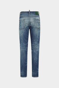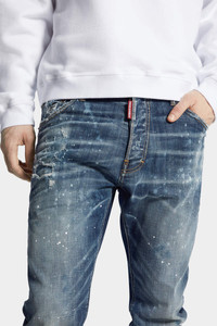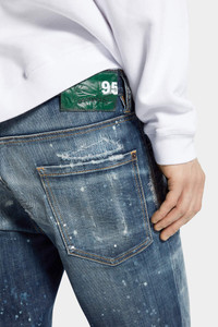 - PRODUCT ID : S74LB1712D30010470 - MADE FROM STRETCH COTTON DENIM - MID BLUE WASH - SLIM FIT - STRAIGHT LEG - FIVE-POCKET STYLE - DISTRESSED FINISH - WHISKERING EFFECTS - SPLATTERED DETAILING - RED DSQUARED2 LABEL - DSQUARED2 PATCH