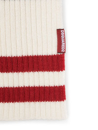stripe-detail wraparound scarf Highlights - Medium grey/off-white/dark red - Knitted construction - Mini logo tag - Stripe detailing - Rectangle shape - Wraparound style Made in Italy Composition Acrylic 45%, Alpaca 37%, Wool 18% SIZE & FIT Measurement LENGTH 73.22 in(186 cm) WIDTH 5.11 in(13 cm) Washing instructions Dry Clean Only