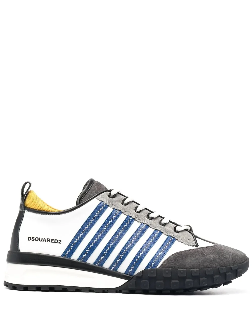 jagged stripe low-top sneakers Forget linear paths. Take a step in a wavier direction with these jagged stripe sneakers from Dsquared2. Bold and stylish, just like you. Imported Composition Outer: Calf Leather 100% Lining: Calf Leather 100% Sole: Polyurethane 100% SIZE & FIT Measurement HEEL 1.96 in(5 cm) Sole height 1.18 in(3 cm)