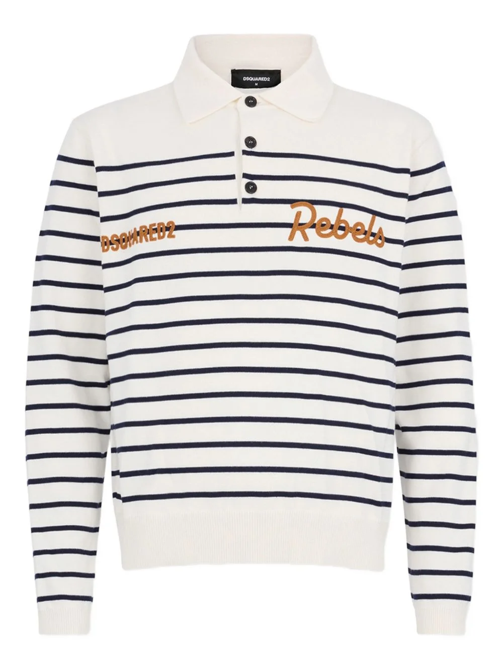 striped long-sleeves polo shirt Highlights - White - Striped design - Button fastening - Long sleeves - Polo collar Made in Italy Composition Fabric 100% Washing instructions Read Manufacturer Guidelines