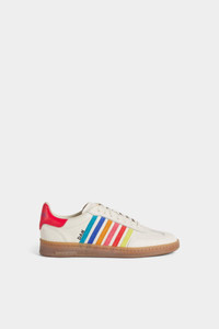 - PRODUCT ID : SNM043925107622M4121 - MADE FROM LEATHER - RAINBOW LEATHER SIDE STRIPES - LACE-UP CLOSURE - RUBBER CUPSOLE - EMBROIDERED LETTERING UPPER: 100% LEATHER. LINING: 50% LEATHER, 50% COTTON. SOLE: 100% ELASTODIENE Mark every stride with the vibrant allure of rainbow stripes: made from milky white tumbled leather, this sneaker reworks our iconic Boxer sneaker for summer. Embroidered lettering adorns the sides, tongue and pull tab.