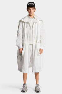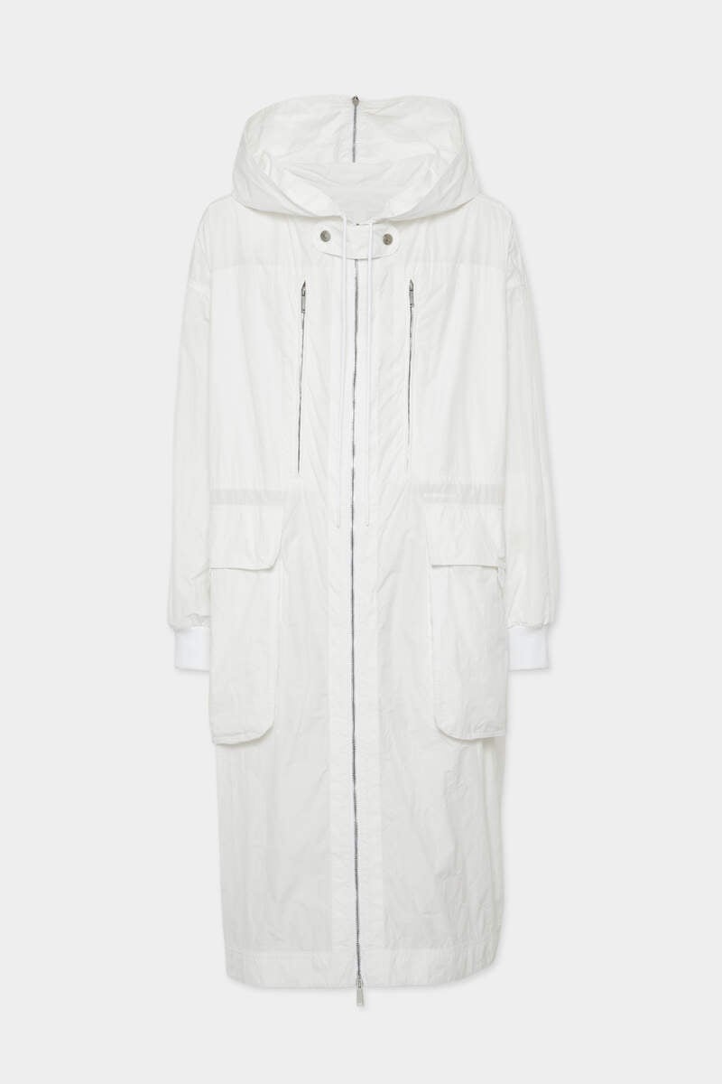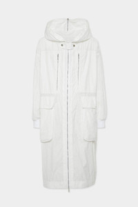 - MADE FROM ULTRA-LIGHTWEIGHT NYLON - OVERSIZED FIT - ZIP CLOSURE - DRAWSTRING HOOD WITH ZIP - LONG ZIP POCKETS - MAXI PATCH POCKETS - RIBBED CUFFS - REAR VENT PRIMARY FABRIC: 59% POLYESTER, 41% POLYAMIDE-NYLON; APPLICATION: 100% POLYURETHANE Embrace the oversized look in this ultra-lightweight sheer nylon parka. Its longline silhouette engulfs the body for an exaggerated look, detailed with maxi zip pockets, a classic rear vent and a zip opening on the hood.