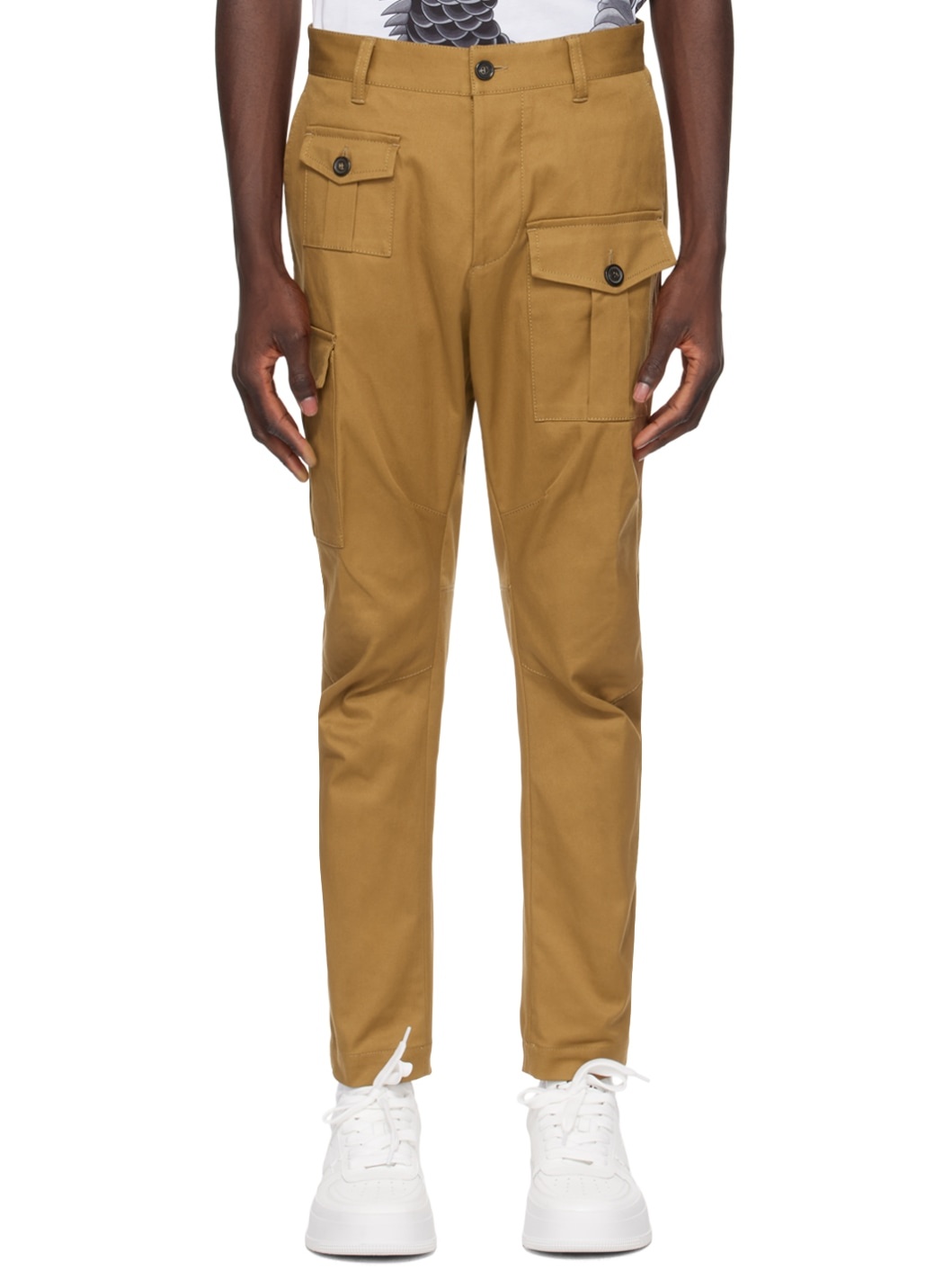 Slim-fit stretch cotton drill cargo pants. · Belt loops · Four-pocket styling · Button-fly · Cargo pockets at front and outseam · Darts at knees · Logo hardware at back Supplier color: Camel