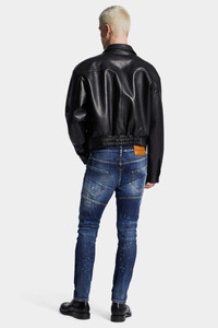 - PRODUCT ID : S74LB1735S30664470 - MADE FROM STRETCH COTTON DENIM - MID BLUE WASH - SLIM FIT - BOW LEG - FIVE-POCKET STYLE - DISTRESSED FINISH - WHISKERING EFFECTS - SPLATTERED DETAILING - RED DSQUARED2 LABEL - DSQUARED2 PATCH