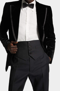 - PRODUCT ID : S71FB0505S39408900 - MADE FROM WOOL-SILK - FRONT BUTTONS - WELT POCKETS - REAR ADJUSTER PRIMARY FABRIC: 65% VIRGIN WOOL, 35% SILK; POCKET LINING: 100% POLYESTER Waistcoat, cummerbund or both? Stand out at your next event in this evening essential, crafted from a refined silk-wool blend with buttons, welt pockets and a rear adjuster. Team a crisp white shirt and dinner trousers.