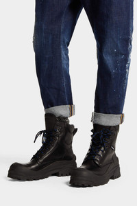 - PRODUCT ID: ABM0138015000012124 - LEATHER COMBAT BOOTS - PADDED ELEMENTS - LOGOED LABEL SEWN ON THE UPPER - TUBULAR LACES - RUBBER LUG SOLE - LEATHER LINING - MADE IN ITALY UPPER: 100% CALF LEATHER/ LINING: 100% CALF LEATHER/ SOLE: 100% THERMOPLASTIC RUBBER Combat boots were originally designed for the army, have later become a worldwide fashion phenomenon. This leather version is easy to match with skinny jeans or combat pants.