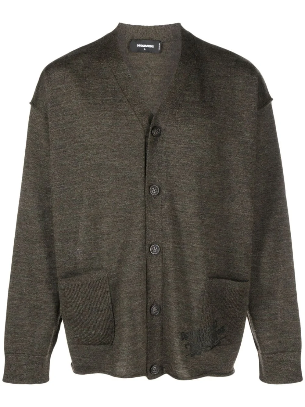 V-neck virgin wool cardigan Highlights - Dark green - Virgin wool - Fine knit - V-neck - Front button fastening - Long sleeves - Two front patch pockets - Straight hem Made in Italy Composition Virgin Wool 100% SIZE & FIT Model measurements Height 6 ft 2 in(1.88 m) Bust/Chest 37.79 in(96 cm) Hips 35.82 in(91 cm) Waist 29.92 in(76 cm) FittingInformation Designed to be unstructured, offering a loose fit throughout Made with a midweight knit, this piece offers some stretch This piece fits true to size – take your usual size Washing instructions Hand Wash