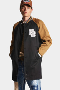 ● PRODUCT ID: S74AA0286S39021900 ● STRETCH COTTON DRILL COAT ● REGULAR FIT ● CONTRASTING RAGLAN SLEEVES ● EMBROIDERED PATCH WITH THE BRAND'S LOGO SEWN ON THE CHEST ● SNAP FASTENING ● TWO WELT POCKETS ● RIBKNIT COLLAR AND CUFFS WITH CONTRASTING STRIPES ● MADE IN ITALY ● PRIMARY FABRIC: 97% COTTON, 3% ELASTANE-SPANDEX LINING: 100% POLYESTER Irony is the leitmotif of this stretch cotton coat inspired by American college bomber jackets. Plays of colour contrasts and typical campus details are reinterpreted on a new fit. The ideal solution for creating decidedly original outfits.