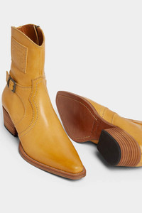 ● PRODUCT ID: BOM0031129000016059 ● LEATHER COWBOY BOOTS ● UPPER WITH STITCHING AND BUCKLED SIDE STRAP ● SIDE ZIP FASTENING ● REAL LEATHER SOLE ● LEATHER LINED ● MADE IN ITALY ● UPPER: 100% CALF LEATHER ● LINING: 100% CALF LEATHER These cowboy boots have a vintage feel and are inspired by a vaguely '70s style, which is expressed by the detail of the strap with buckle sewn on the external side of the upper. Strong characterisation is added by the contrasting stitching, the tapered toe and the 4cm Cuban heel. Ideal with bootcut trousers.