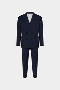 ● PRODUCT ID: S74FT0467S76425524 ● SUIT IN COMBED STRETCH WOOL ● REGULAR FIT ● JACKET: ● PEAK LAPELS ● DOUBLE-BREASTED BUTTON CLOSURE ● TWO FLAP POCKETS ● POCKET FOR POCKET SQUARE ● REAR CENTRAL SLIT ● LINED ● TROUSERS: ● FLAT FRONT STYLE WITH PRESSED CENTRAL CREASE ● WELT POCKETS ● LEG WITH TURN-UP HEM ● MADE IN ITALY ● FABRIC: 98% PURE VIRGIN WOOL, 2% ELASTANE/SPANDEX Jackets and trousers aren't just for boomers, even if the jacket is double-breasted. This version was created to highlight the shape of the body and make a more contemporary suit, to be worn with casual style. Combined with a contrasting T-shirt or a shirt without a tie, it immediately becomes a must-have to always have ready to wear.