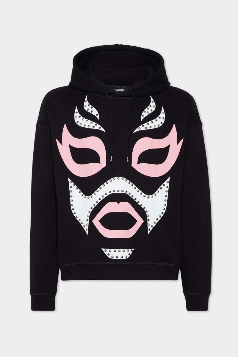 - MADE FROM UNBRUSHED COTTON FLEECE - RELAXED FIT - DRAWSTRING HOOD - MASK PRINT - STUDDED DETAILING PRIMARY FABRIC: 100% COTTON; SECONDARY FABRIC: 98% COTTON, 2% ELASTANE-SPANDEX Want an easy off-duty look, but with attitude? Look no further than this cotton hoodie with wrestling-inspired mask print, embellished with edgy metal studs. Just add jeans and sneakers and you're good to go.