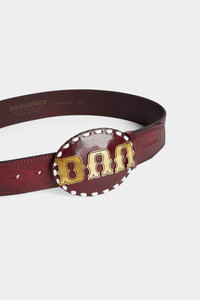 - PRODUCT ID : BEM067812900001M1068 - MADE FROM LEATHER - LEATHER PLAQUE BUCKLE - METAL DAN LETTERING - CONTRAST STITCHING - DEBOSSED LOGO ON THE TIP 100% COW LEATHER; BUCKLE: 80% ZAMAK, 20% COW LEATHER Inspired by the Dsquared2 archives, this vintage cowboy belt features a leather-covered plaque buckle with metal DAN lettering: one half of the famous Caten duo. Contrast stitching adds an artisanal touch.