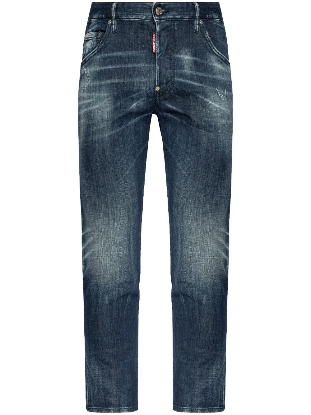 whiskering-effect skinny jeans Highlights - Blue - Concealed fly and button fastening - Classic five pockets - Belt loops - Applique logo Made in Italy Composition Cotton 98%, Elastane 2%