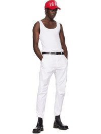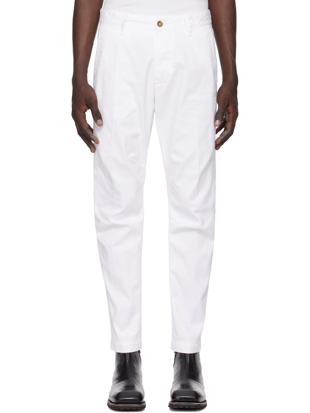 Stretch cotton twill trousers. Whiskering throughout. · Paneled construction · Belt loops · Four-pocket styling · Button-fly · Creased legs · Darts at knees · Logo plaque at back Supplier color: White