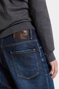 - PRODUCT ID : S74LB1715D30010470 - MADE FROM STRETCH COTTON DENIM - DARK BLUE WASH - LOOSE FIT - FIVE-POCKET STYLE - WHISKERING EFFECTS - RED DSQUARED2 LABEL - DSQUARED2 PATCH