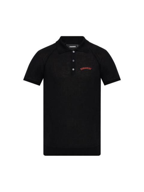 logo polo shirt Highlights - Black - Front button placket - Short sleeves - Straight hem Made in Italy Composition Wool 100%