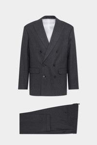 - PRODUCT ID : S74FT0496D35248001F - MADE FROM STRIPED WORSTED WOOL - TWO-PIECE SUIT - DOUBLE-BREASTED JACKET - PEAK LAPELS - CHEST WELT POCKET - LOWER FLAP POCKETS - BUTTONED CUFFS - DOUBLE-PLEATED TROUSERS PRIMARY FABRIC: 100% VIRGIN WOOL; INSIDE: 100% POLYESTER; LINING: 100% POLYESTER; SLEEVE LINING: 60% VISCOSE-RAYON, 40% POLYESTER; POCKET LINING: 100% COTTON Rediscover the elegant allure of a timeless double-breasted silhouette. This two-piece suit is crafted from worsted wool with a classic stripe. Ditch the tie and pair with a casual crew-neck tee for a contemporary take on smart sartorial style.