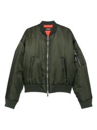 zip-front bomber jacket Highlights - Army green - Zip fastening - Ribbed hem and cuffs - Welt pockets - Long sleeves Imported Composition Polyester 100%, Elastane 100%, Nylon 100% SIZE & FIT Model measurements Height 6 ft 0 in(1.84 m) Bust/Chest 35.82 in(91 cm) Hips 37 in(94 cm) Waist 28.34 in(72 cm) Washing instructions Read Manufacturer Guidelines