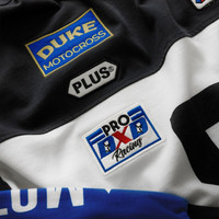 Our DR Motorsport sweatshirt is an homage to vintage motocross jerseys. It’s made from 380GSM rustic cotton-jersey with a more natural and traditional construction, like styles of the ‘80s and ‘90s. Throughout, there are references to the track, including hand-drawn sponsors, embroidered patches and tri-colour panelling. SPECIFICATIONS Fit Regular Fit Composition 100% Cotton Weight 320 gsm Detail This is a new fit and fabric this season. A 320gsm 100% cotton rustic jersey, inspired by vintage racing jerseys. Multiple prints and embroidered patches on the chest Packaging All our packaging is made from recycled materials Origin Handmade in Portugal