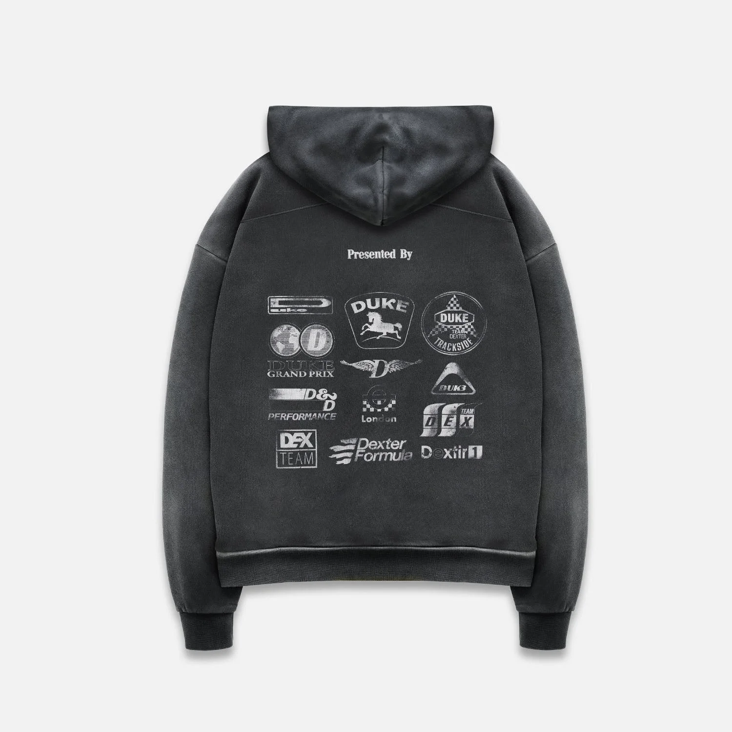 Throughout DR, you’ll spot references to vintage motorsport. This Hoodie is printed with our iconic Sponsors graphic at the back, digitally hand-drawn by Valentino. It’s custom-knitted from 420GSM brush-back cotton-jersey and is treated with a corrosive spray for the look and feel of vintage. SPECIFICATIONS Fit Relaxed Fit Composition 100% cotton Weight 420gsm Detail Custom Knitted. Brushback. Custom fade out with a hand corrosive spray finish. Back yoke panelling. Water based screen prints Packaging All our packaging is made from recycled materials Origin Handmade in Portugal