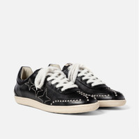 Our Ace High collection is inspired by the style of the American West. Part of the offering, these Plus Duke Sneakers are made from panels of black leather and pressed with silver-tone studs, just like traditional Western boots. They’re finished with mohair-style laces, contrast soles and removable tongues. SPECIFICATIONS Sole Rubber flat sole Upper Italian cow leather Lining Durable leather + EVA insole for extra comfort with our printed icon monogram Detail Removable lace guard. Mohair-style + Cotton laces. Custom de-bossed steel eyelets Packaging All our packaging is made from recycled materials Dust Bag Comes with a D+D organic cotton dust bag