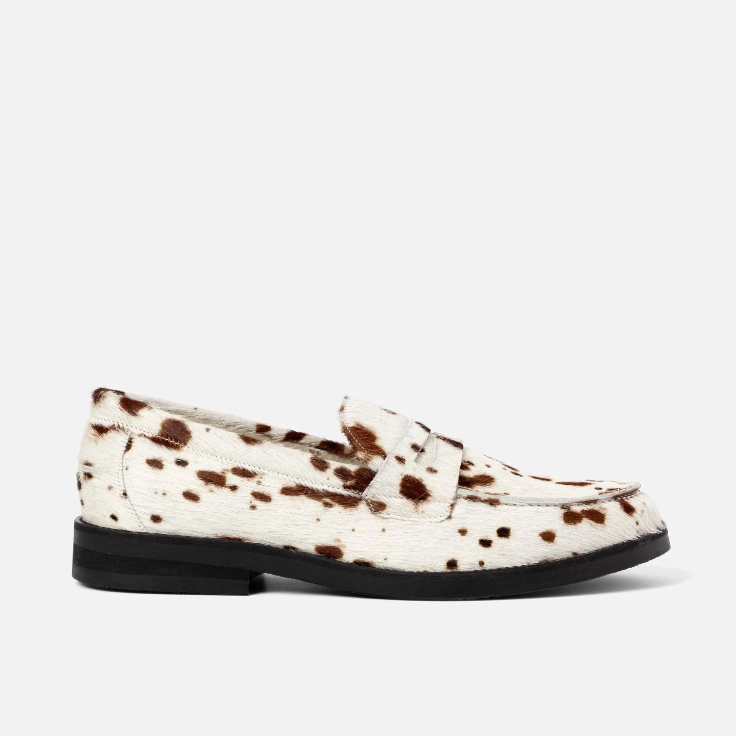 Our Ace High collection takes its cues from the style of the American frontier. Made from cow-print pony hair – a fabric you’d find throughout vintage Americana – these Wilde Loafers are set on 25mm TPU soles. They’re finished with cushioned in-socks, stamped with a spell-out logo. SPECIFICATIONS Sole 25mm prefabricated TPU sole Upper Premium pony hair leather Lining Leather lining + cushioned insock Detail Cow print pony hair Packaging All our packaging is made from recycled materials Dust Bag Comes with a D+D organic cotton dust bag