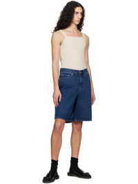 Non-stretch denim shorts. · Belt loops · Five-pocket styling · Zip-fly · Hammer loop at outseam · Leather logo patch at back waistband · Logo-engraved silver-tone hardware · Contrast stitching in tan Supplier color: Classic blue 100% cotton. Made in South Korea 251965M193001