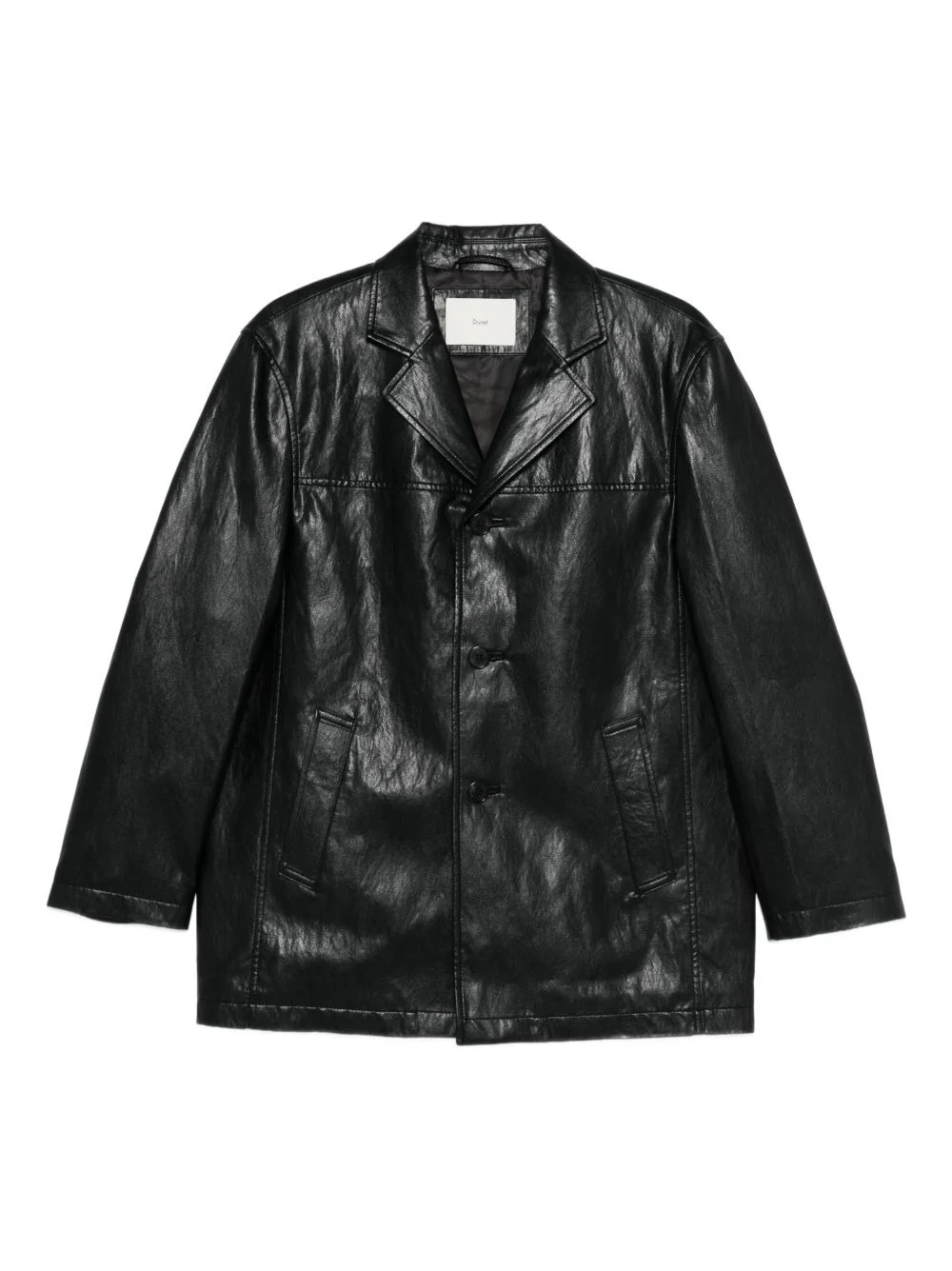 buttoned lapel Jacket Highlights - Black - Front button fastening - Front welt pockets - Notched lapels - Topstitching Imported Composition Outer: Artificial Leather 100% Lining: Polyester 100% SIZE & FIT Model measurements Height 5 ft 10 in(1.78 m) Bust/Chest 33.46 in(85 cm) Hips 36.22 in(92 cm) Waist 23.22 in(59 cm) Washing instructions Read Manufacturer Guidelines