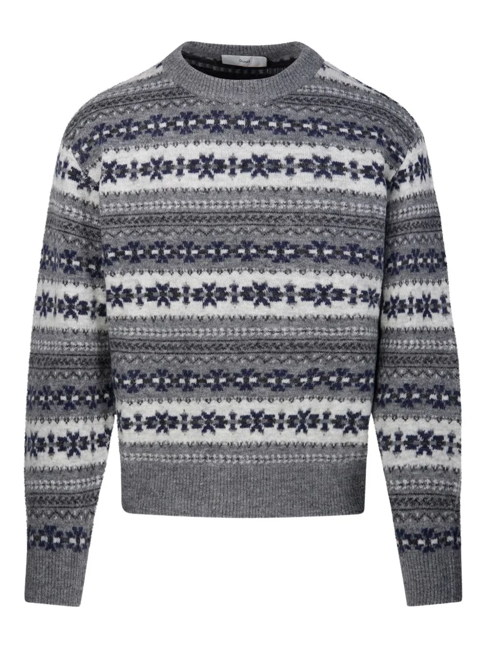 fair-isle crew-neck jumper Highlights - Grey - Fair isle intarsia knit - Crew neck - Long sleeves - Ribbed hem - Ribbed cuffs Imported Composition Polyamide 42%, Acrylic 38%, Wool 10%, Alpaca 6%, Polyurethane 4% Washing instructions Read Manufacturer Guidelines