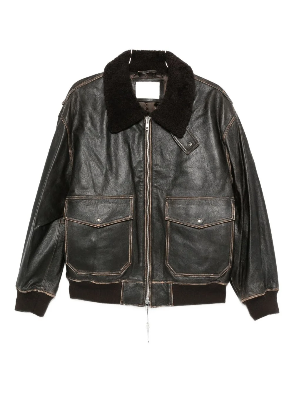 lambskin leather flap-pocket coat Highlights - Brown - Lambskin leather - Zip fastening - Shearling collar - Flap pockets - Welt pockets Imported Composition Sheep Skin/Shearling 100%, Leather 100% SIZE & FIT Model measurements Height 6 ft 0 in(1.84 m) Bust/Chest 35.82 in(91 cm) Hips 37 in(94 cm) Waist 28.34 in(72 cm) Washing instructions Specialist Cleaning