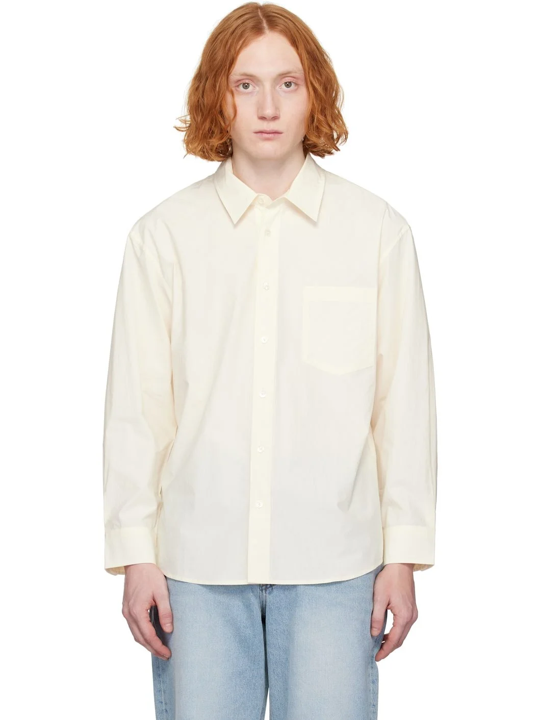 Oversized cotton poplin shirt. · Spread collar · Button closure · Logo embroidered at patch pocket · Concealed logo patch at placket · Shirttail hem · Dropped shoulders · Logo embroidered at sleeve · Pleats at adjustable single-button barrel cuffs · Box pleat at back yoke · Logo-engraved hardware Supplier color: Cream