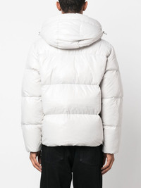 logo-patch zip-up padded jacket Highlights - Light grey/olive green - Feather down - Semi-matte finish - Padded design - Logo patch at the chest - Detachable hood - High neck - Front two-way zip fastening - Long sleeves - Two side welt pockets - Straight hem Imported Composition Lining: Polyamide 100%, Feather Down 100% Outer: Polyamide 100% SIZE & FIT Model measurements Height 6 ft 2 in(1.87 m) Bust/Chest 38.18 in(97 cm) Hips 36.61 in(93 cm) Waist 29.13 in(74 cm) Washing instructions Hand Wash