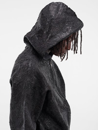 Featuring: • Boxy fit • Cropped length • All-over floral embellishment • Hood • Front zip closure • Long sleeves • Rib-knit cuffs and hem • Waffle-knit lining • 100% Cotton • Standard sizing Model is 6’2” wearing size M. Shoulders: 19” Chest: 38” Waist: 28”
