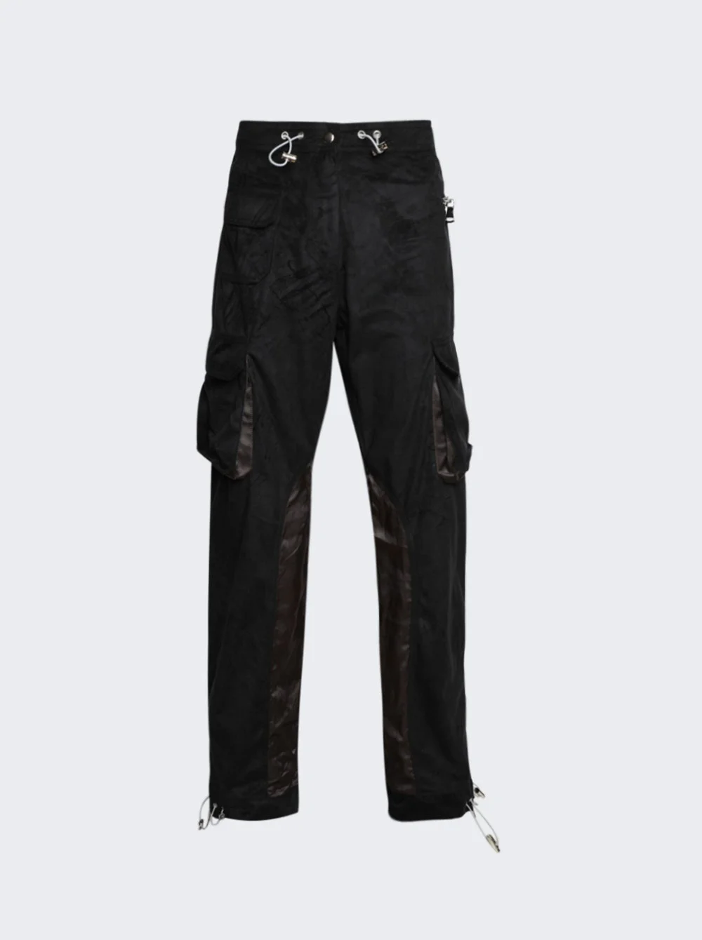 Details - Relaxed fit pants - Charmeuse silk inserts - Side cargo pockets - Adjustable drawstring hem with toggles - Adjustable waistband with toggles Dimensions: Model is 6'1"/185cm and is wearing a size M Composition: fabric blend; silk Care: care according to label Brand Style: 13 Designer/Brand: EARTHLING VIP