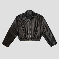 *100% Cow Leather / Satin Lining *Cropped *Zipper-front *Studded *2 Hand Pockets *Made in USA