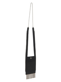 Grained leather pouch in black. · Stripes throughout · Ball-chain crossbody strap · Silver-tone logo stamp at face · Three card slots at face · Beaded fringe at base · Logo-engraved gunmetal-tone hardware · H6.5" x W4.25" · Total height: H26" Part of the ECCO.kollektive x Kiko Kostadinov collaboration. Supplier color: Black/Black Leather. Made in British Indian Ocean Territory 241953M171002