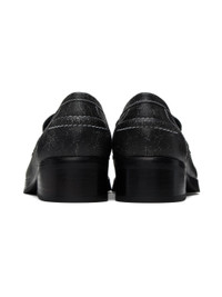 Cracked grained leather loafers in black. · Square moc toe · Logo embossed at leather footbed · Buffed leather lining · Rubber sole · Heel: H1.25 in · Contrasting stitching in white Supplier color: Black