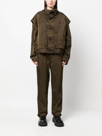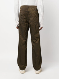 crinckled-finish straight-leg trousers Cut from a garment-washed technical fabric, these trousers showcase Eckhaus Latta's consideration for texture, tactility and garment construction. They're cut for a straight-leg fit and boast the brand's signature L-shaped pockets. Highlights - Moss green - High waist - Crinkled finish - Button fly fastening - Two rounded pockets to the sides - Two rear patch pockets - Straight hem - When buying this unisex item, keep in mind that it is graded in standard men's sizing. Made in United States Composition Nylon 100% SIZE & FIT Model measurements Height 5 ft 10 in(1.78 m) Bust/Chest 33.46 in(85 cm) Hips 36.22 in(92 cm) Waist 23.22 in(59 cm)